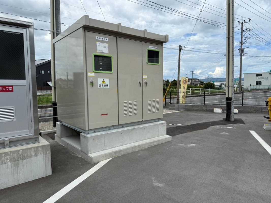 倉庫会社F様 高圧受電設備新設(キューピクル、建柱装柱、PAS気中開閉器)、太陽光パネル新設